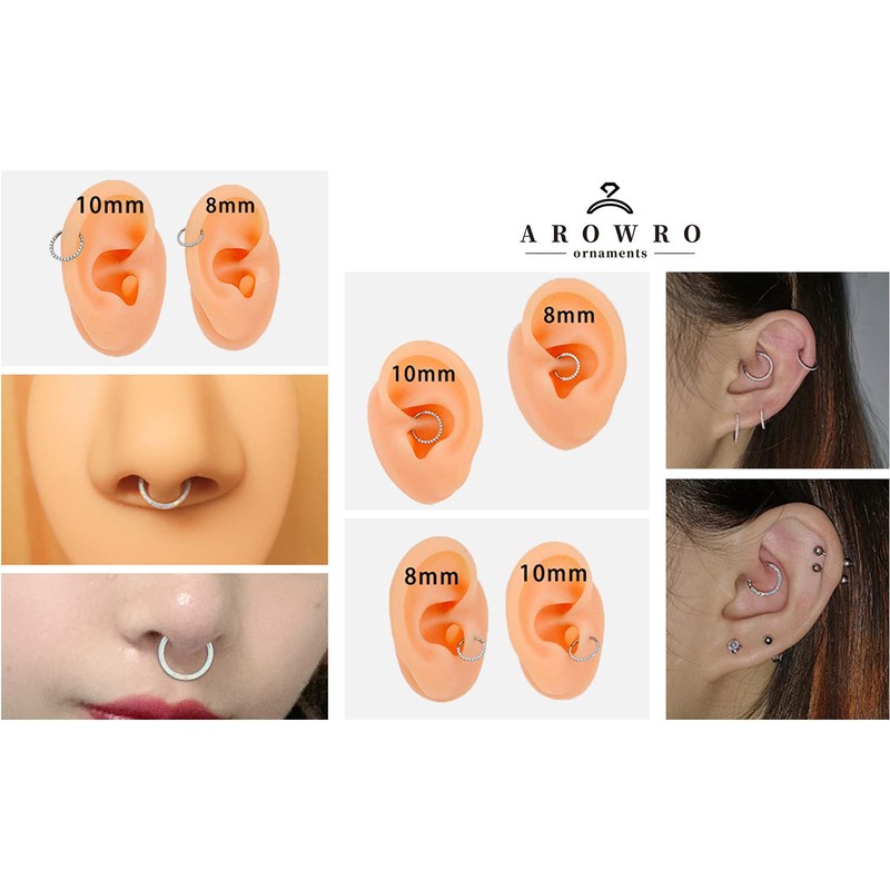 AROWRO G23 Titanium Nose Rings Hoop 18G 16G 14G Seamless Piercing Rings for Nose Septum Cartilage Helix Tragus Conch Rook Daith Lobe Diameter 6/8/10/12 mm, Titanium