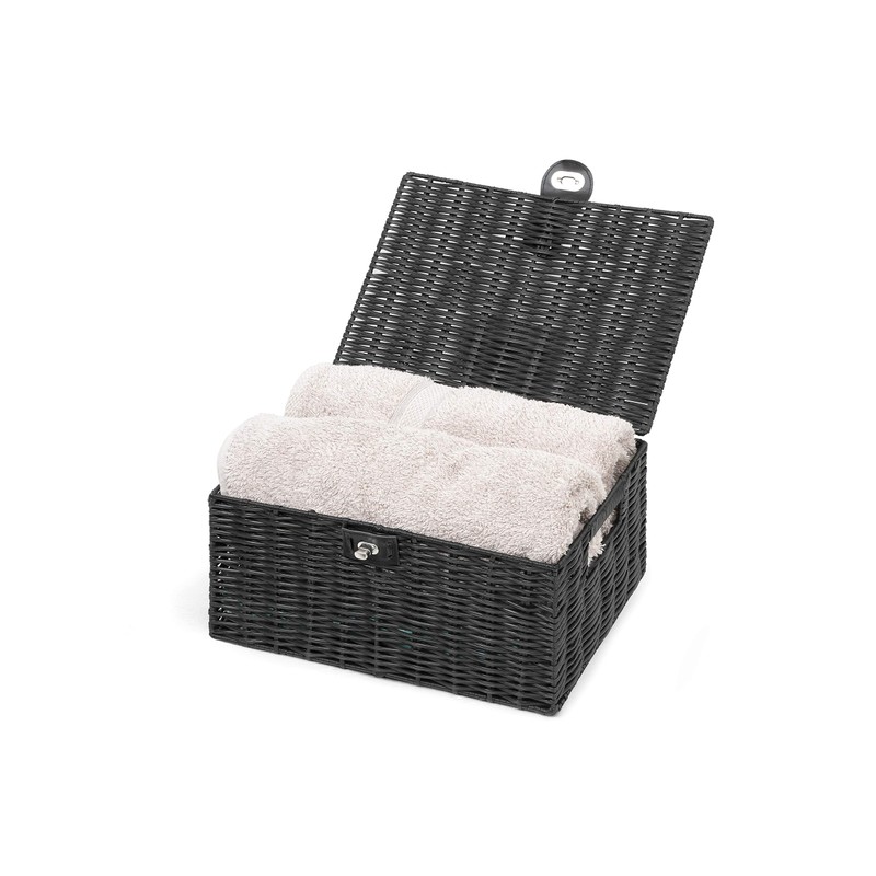 ARPAN Medium Resin Woven Storage Basket Box With Lid & Lock - Black