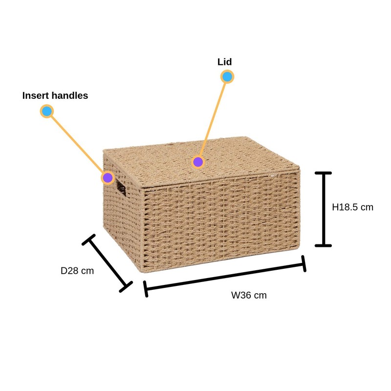 • Paper Rope Storage Hamper Basket With Lid -