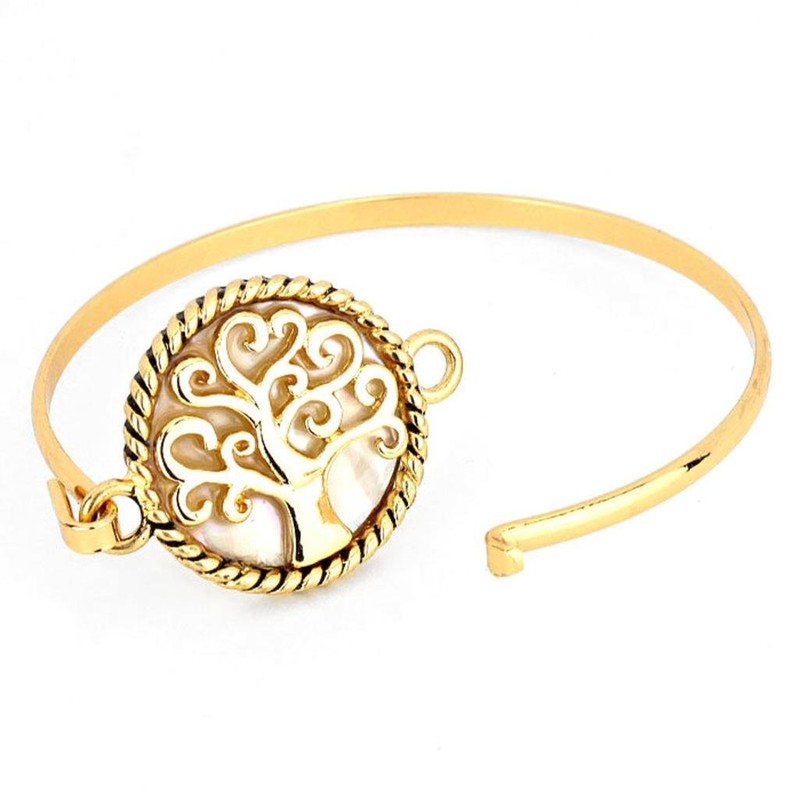 - Fashion Imitation Mother of Pearl Filigree Fold Over Bracelet For Women.