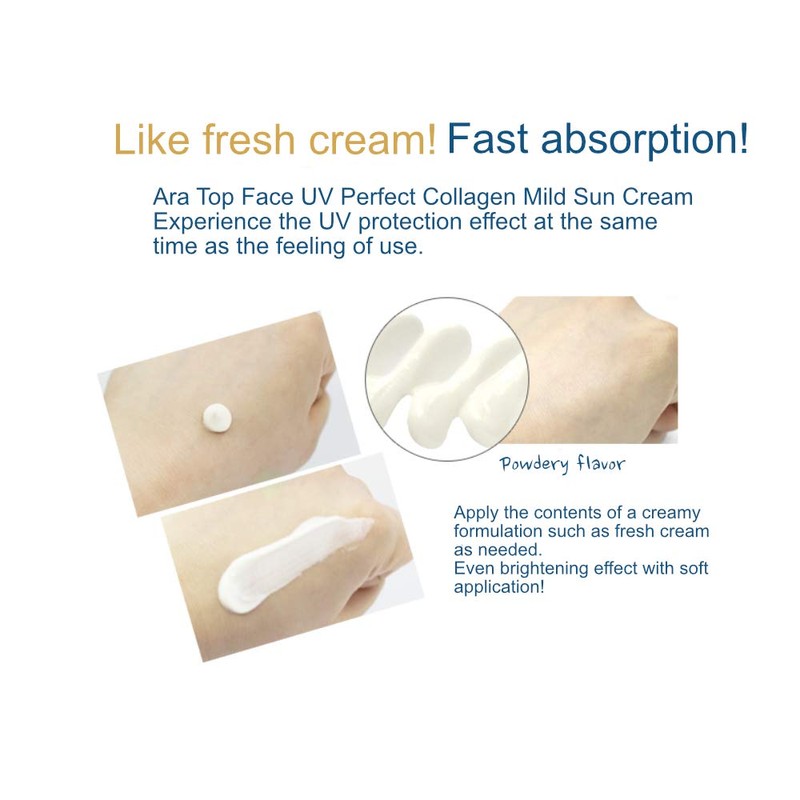 arraTOPFACE UV Perfect Collagen-Mild Sun SPF50+/PA+++ 70ml / 2.37 fl.oz (Pack of 2) UVA UVB blocking, Physical sunscreen.