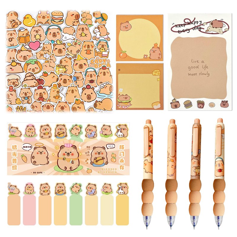 - Product Content: 1 set of back-to-school supplies, including 4 gel ink pens, 50 cartoon stickers, 2 bundle sticky notes, 1 guestbook and 1 index tag