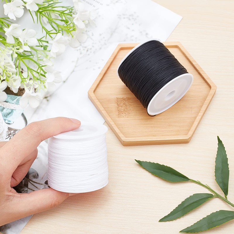 - Package Include-- You will receive 2 rolls waxed polyester thread, the cord is about 0.5mm thick, about 116 yards/roll, with bright black and white color.