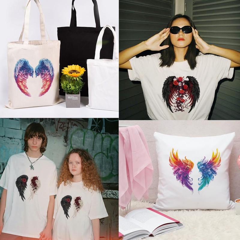 - Package Includes -- Our heat transfer sticker collection includes 4 different wings mixed styles. They vary in size depending on the pattern. You can choose the right pattern according to the size of the clothes