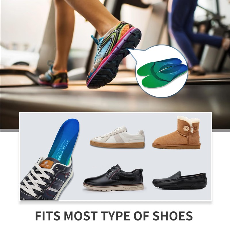 • Washable Multi-use Insoles: Delicate design and full-length shape to suit any type of shoes, such as running trainers, casual shoes, fashion sneaker, hiking shoes and work boots.Easy to clean