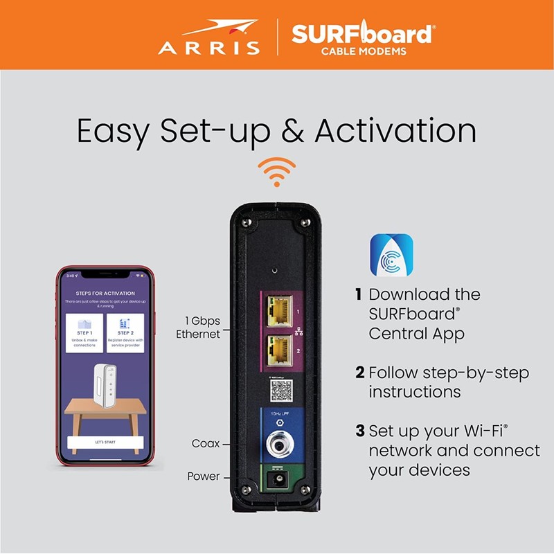 ARRIS Surfboard SBG10-RB DOCSIS 3.0 Cable Modem & AC1600 Dual Band Wi-Fi Router, Approved for Cox, Spectrum, Xfinity & Others (Renewed)