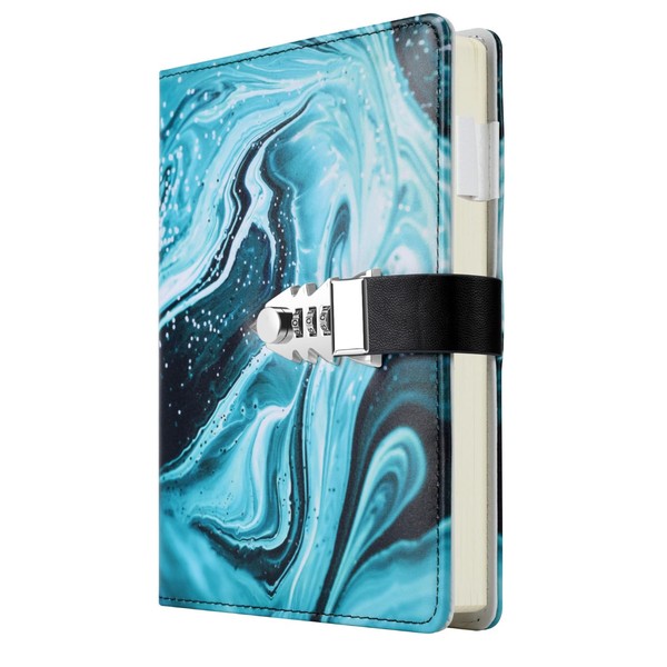 ARRLSDB A5 Creative Password Lock Diary, PU Leather Journal with Combination Lock Password Notebook Locking Personal Diary (Style 6)