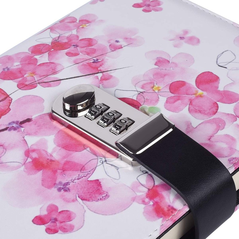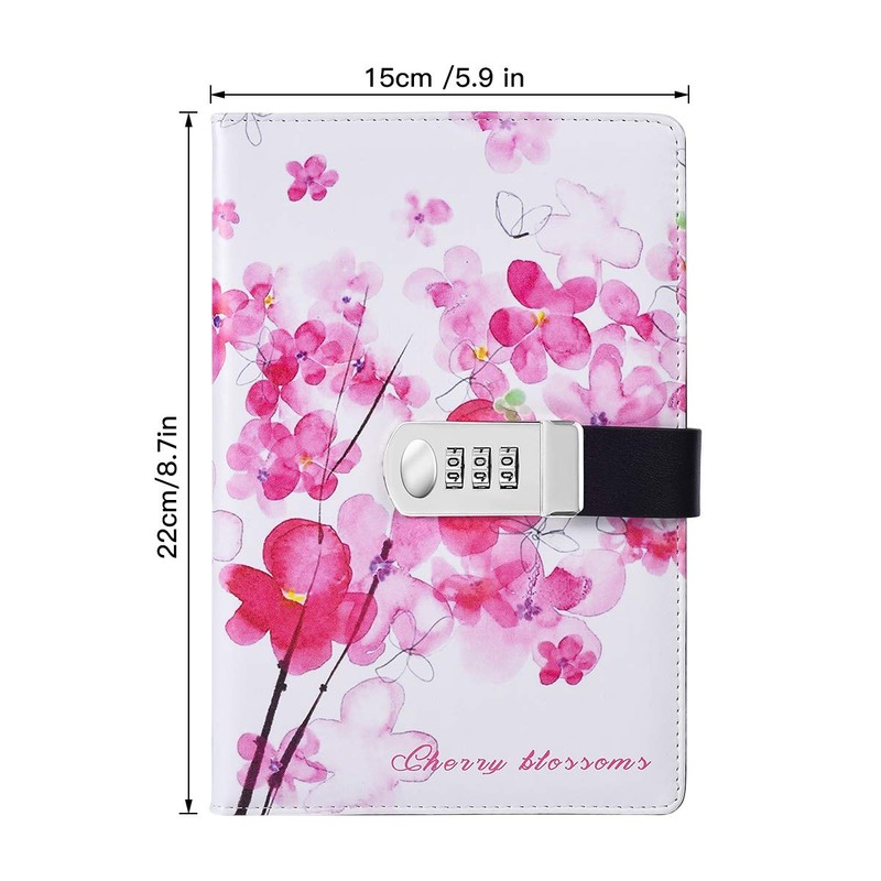ARRLSDB Password Lock Diary, A5 PU Leather Diary with Combination Lock Password Journal Locking Student Diary (Sakura)