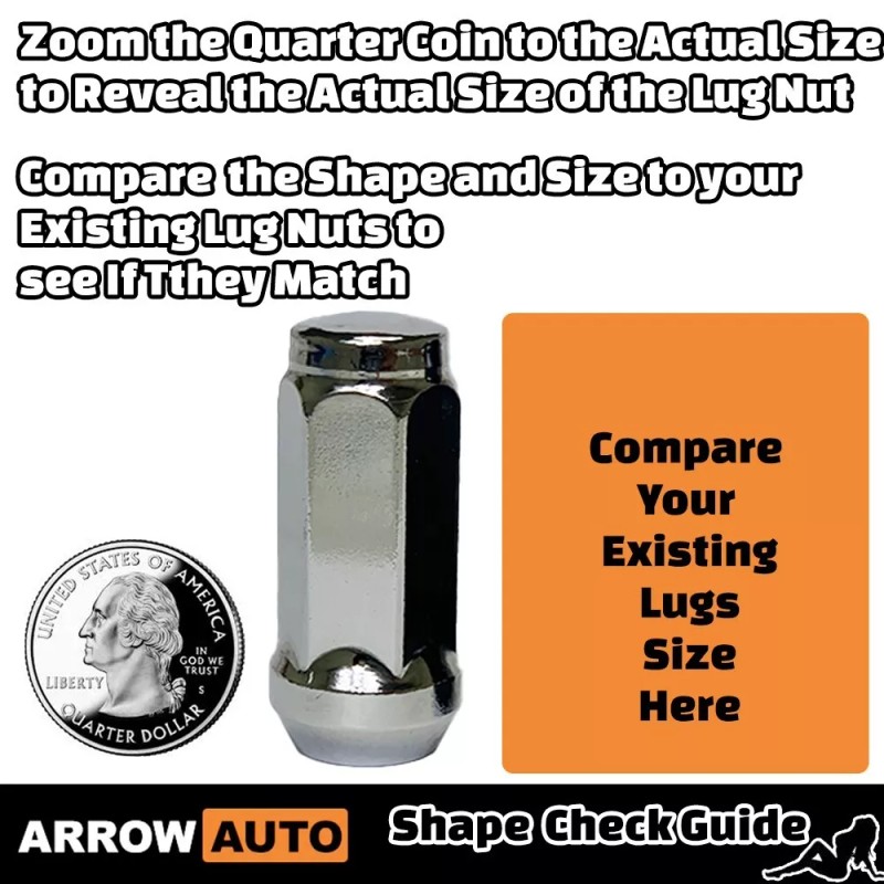 ARROW 24 Chrome 14x1.5 Bulge Acorn Lug Nuts XL 2" For Chevy GMC Silverado Sierra 1500