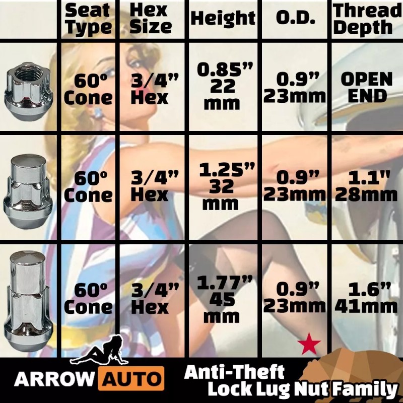 Lug Nut Overall Diameter: 0.9"(23mm)
