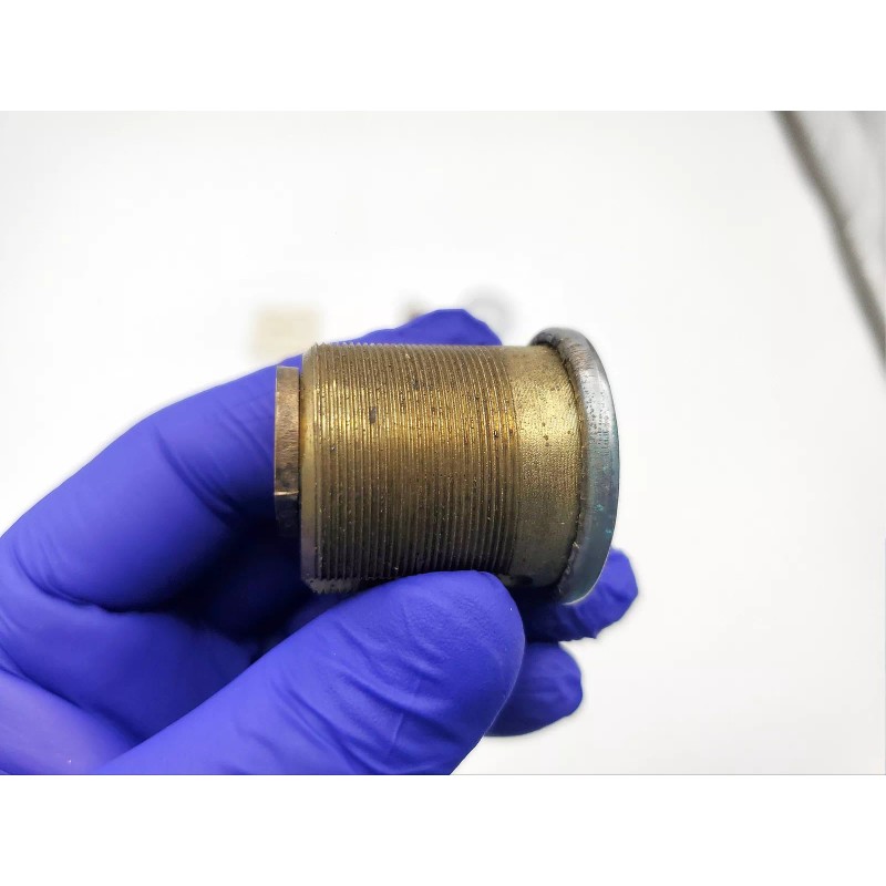 The packaging was damaged and discarded. Some spots of tarnish and oxidation from long term warehouse storage.