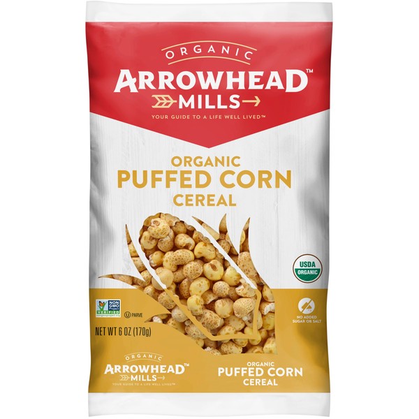 Arrowhead Mills Puffed Corn Cereal, Organic, Non-GMO, 6 oz (Pack of 2)