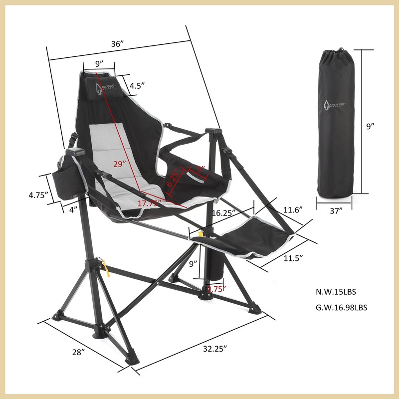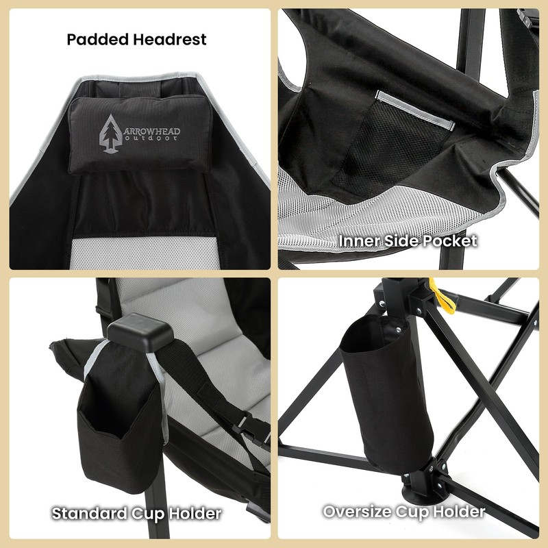Arrowhead Outdoor Folding Hammock Camp Chair with Detachable Footrest, Stabilized Feet, Padded Headrest and Seat, Large Cup Holders, 300 LBS Weight Capacity, for Camping, Beach, Tailgating