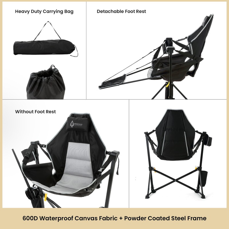 - ✅ Relax Anywhere in Comfort – Folding hammock‑style camp chair with a detachable footrest and padded headrest & seat for unmatched lounging whether camping, tailgating, or at the beach.