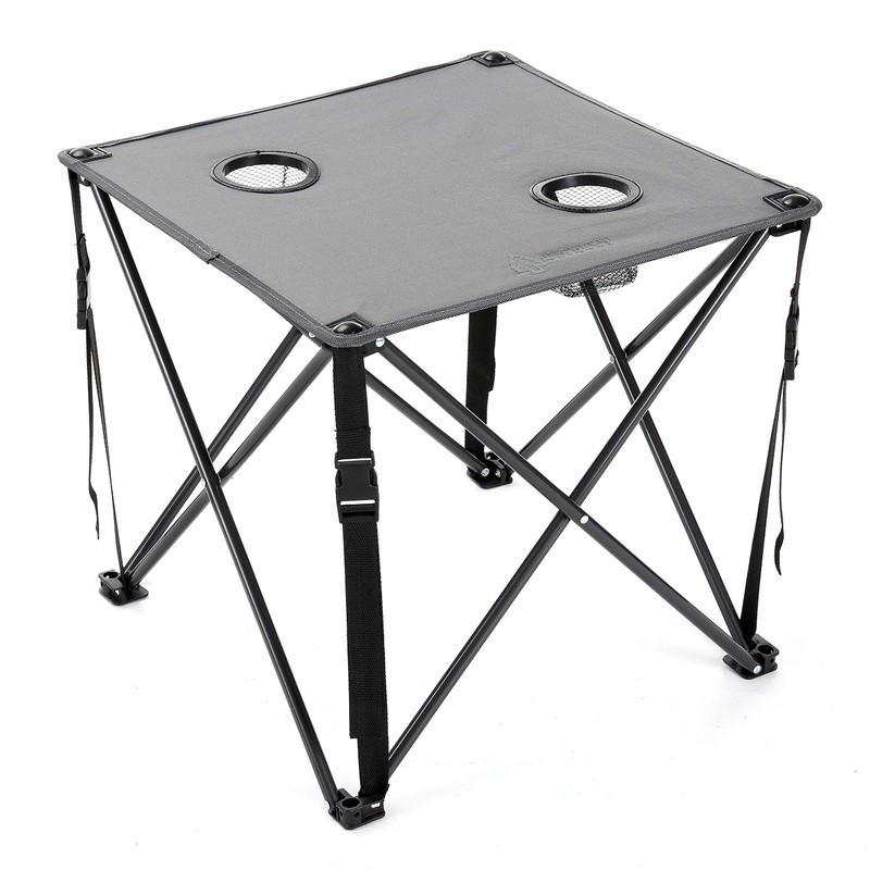 • [HEAVY-DUTY SOLID CONSTRUCTION] – Heavy-duty steel frame construction with rugged 600D canvas fabric. Measures 19”L x 19”W x 18”H when setup (table top spans 24” diagonally).