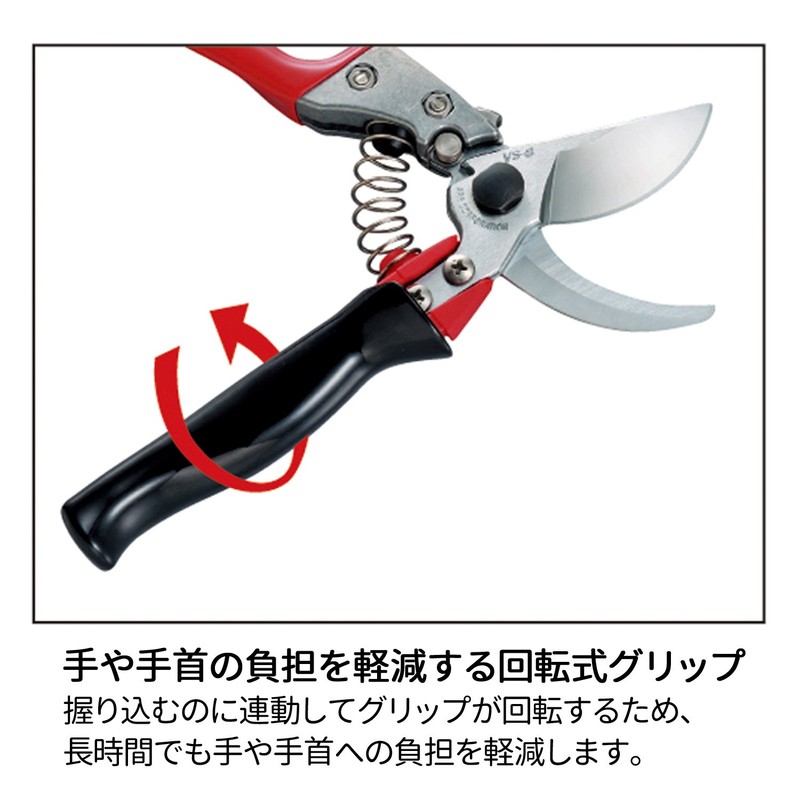 The VSR-series features a rotating handle designed to reduce stress on your hand and wrist! Features the same blades as the signature VS-Series for superior sharpness designed to last. The locking latch is released by simply squeezing the handles, enabling single handed operation. The pruners are made of thick high quality cast aluminum with a non-slip coating of smooth plastic for greater durability and comfort. Lightweight and perfectly balanced - designed for professionals who use the tools all day!