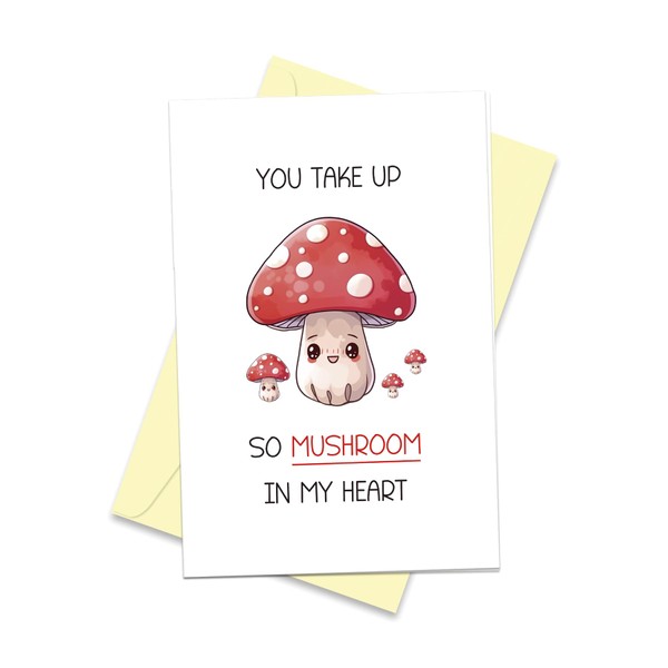 Arsagen Adorable Mushroom Love Card for Him, Funny Valentine’s Day Card, Humor Pun Anniversary Card, You Take up So Mushroom in My Heart