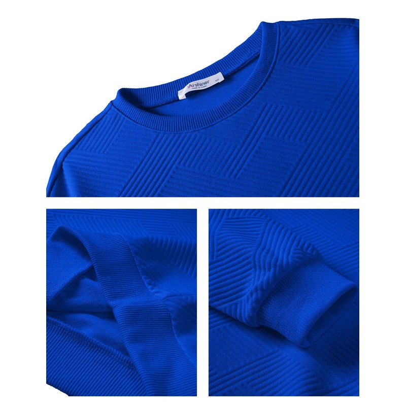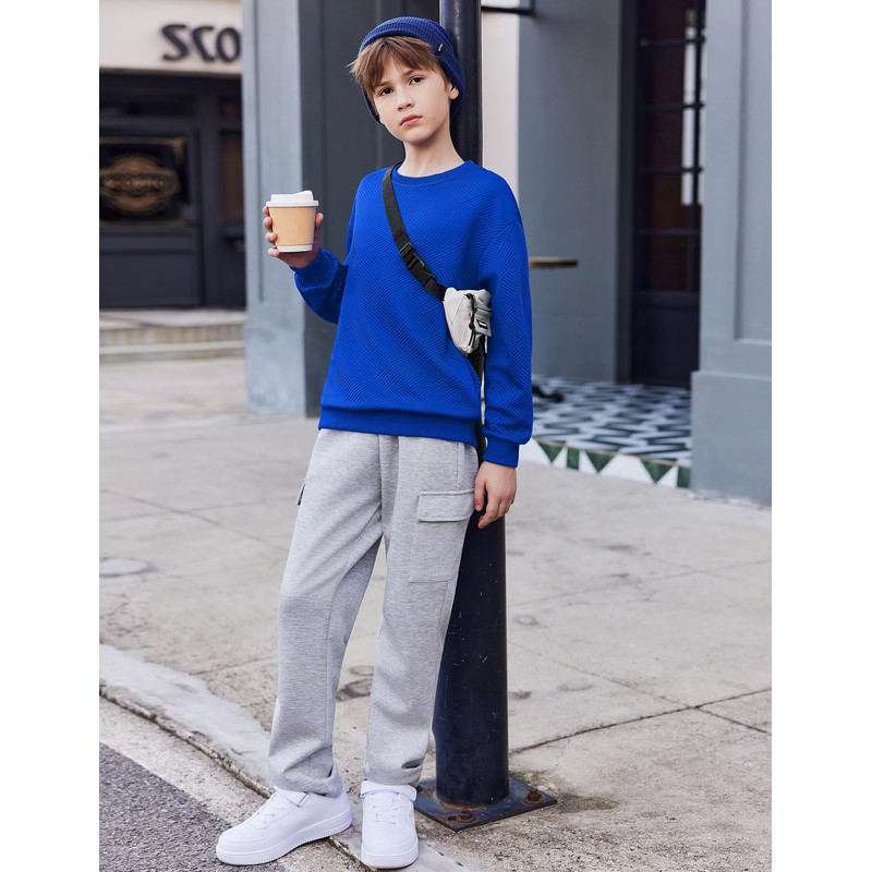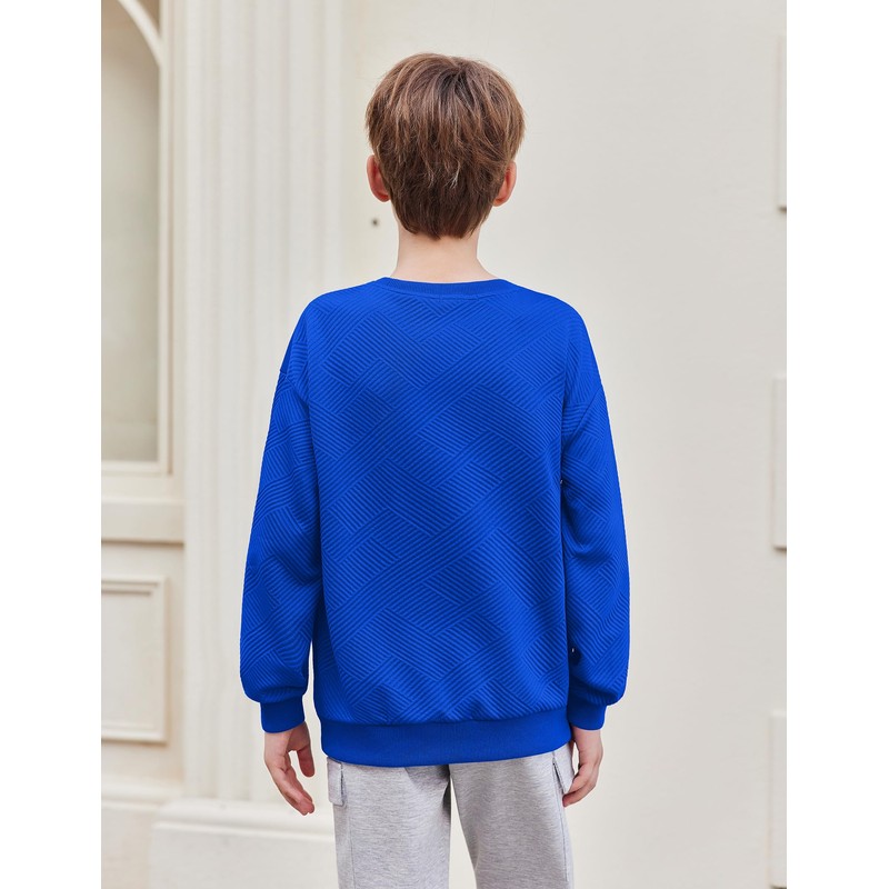 Arshiner Boys Sweatshirts Soild Color Geometric Texture Long Sleeve Crewneck Fall Winter Clothes 6-14 Years Royal Blue