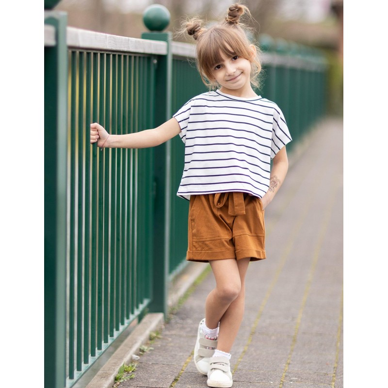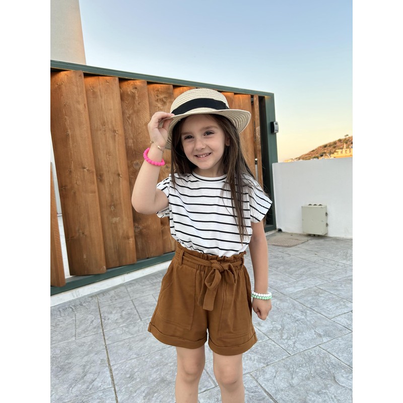 - Girls Short Pants: The elastic paperbag waist shorts with a detachable band that can be tied into a bow or other shapes. Looks loose and fashion.And there are two side pockets, free your hands when you play