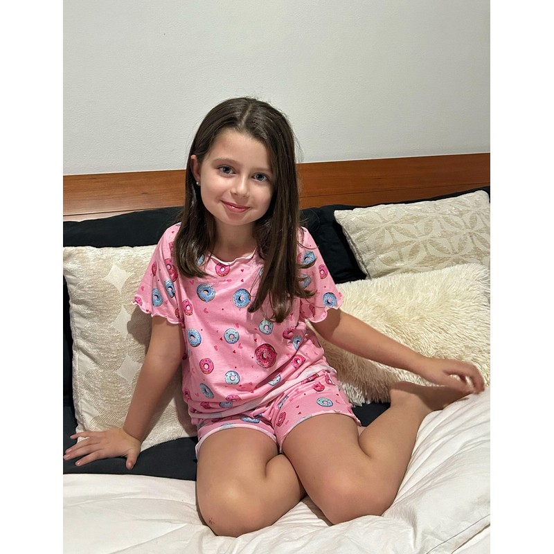 Arshiner Girls Pajama Set Short Sleeve Lounge Set Soft Shirring Summer Sleepwear Pj Sets Pink Donut 7-8 Years
