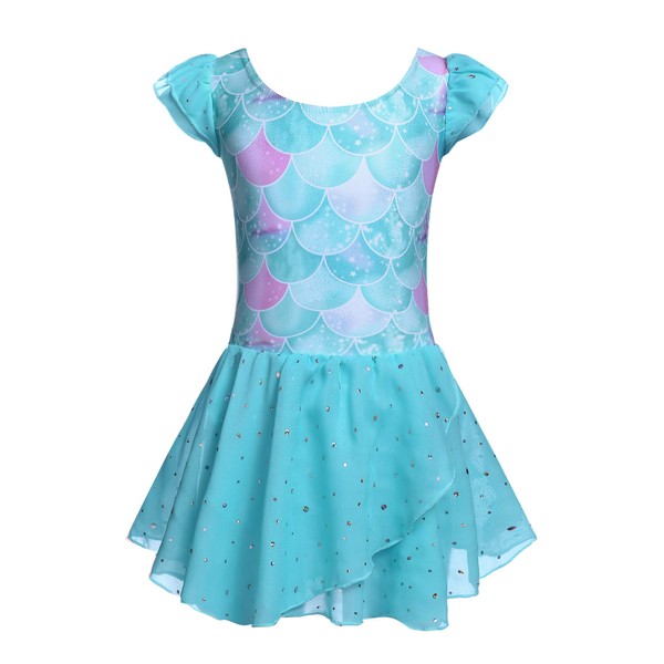 Arshiner Toddler Leotard Gymnastics Flutter Sleeve Ballet Leotards with Shinny Skirts for Girls Green Mermaid 2-3T