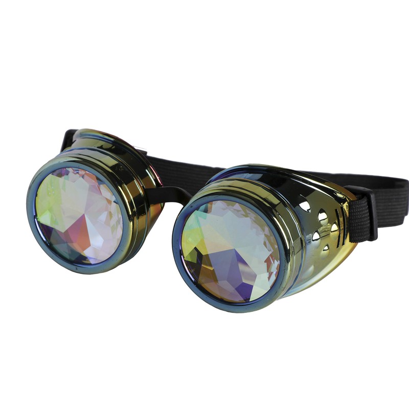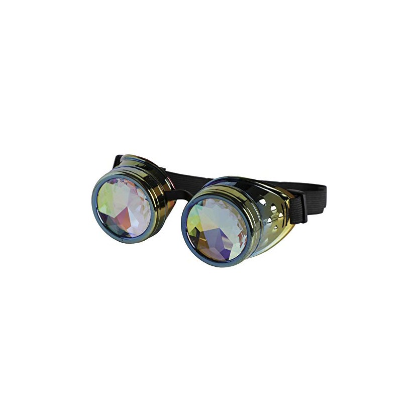 These kaleidoscope goggles are the perfect addition to your next rave, festival, or costume outfit! With a diffractive lens, the goggles add a new layer of amazing spectrum of light and color to anything. Adjustable elastic strap in the back with a lightweight design.