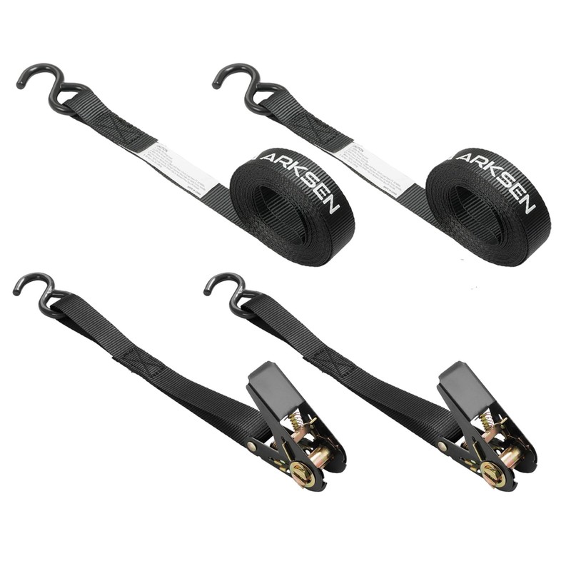 ARSKEN High-Strength 2 pcs Ratchet Tie Down Strap 1" x 197"(2200lb Break Strength) for Heavy Equipment, with Strong S Hook and Corrosion Resistant Metal Button for Rack, Truck, Cargo, Moving & More