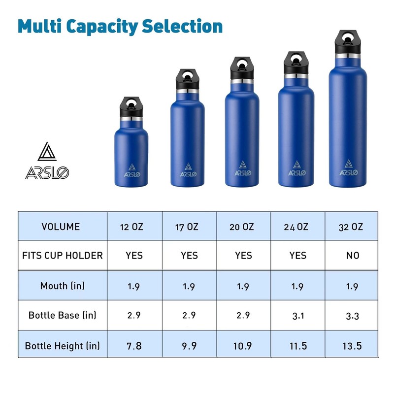 - MULTIPLE SIZE AND COLORS: Goodbye sweat ! Vacuum insulation with copper plating lining provide a better insulation condensartion. Vacuum stainless steel water bottle has multiple size (12 oz, 17 oz, 20 oz, 25 oz, 32 oz ) to meet your request with more than 10 colors. The anti-slip carbon coating surface ensucs a good grip and protect metal flask bottle from paint loss and any scratches. 12 oz, 17 oz, 20 oz, size fit in most coaster