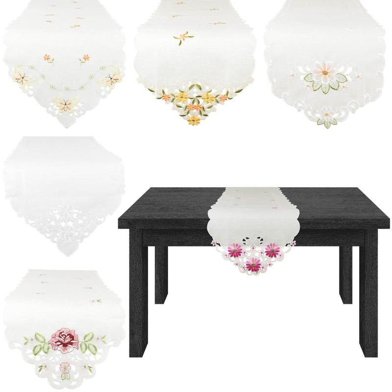 - The table runner from Arsvita enchants any table with its beautiful and elaborate decorative embroidery, our pretty embroidery corner with elegant cutwork is available in numerous decorative motifs