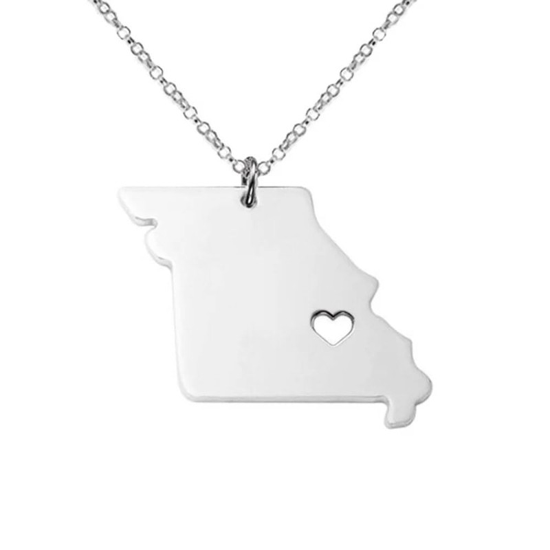 Art Attack Stainless Steel I Love Missouri Necklace, Show Me Cave State Heart Map Pendant (Silver)