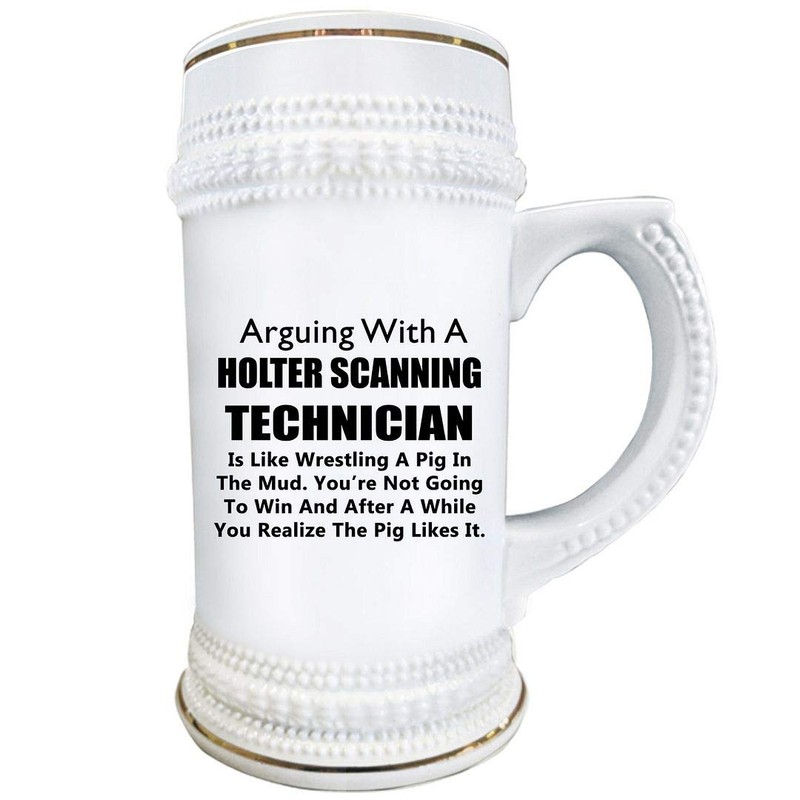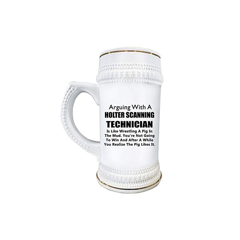Art by Chelsydale Gifts for Holter Scanning Technician Beer Stein Mug 22oz Ceramic Novelty Drinkware - HST Cardiovascular Technologist EKG Monitor Tech Funny Gag - Arguing is Like Wrestling