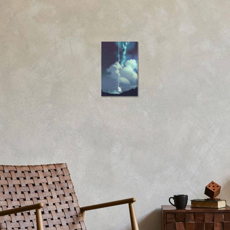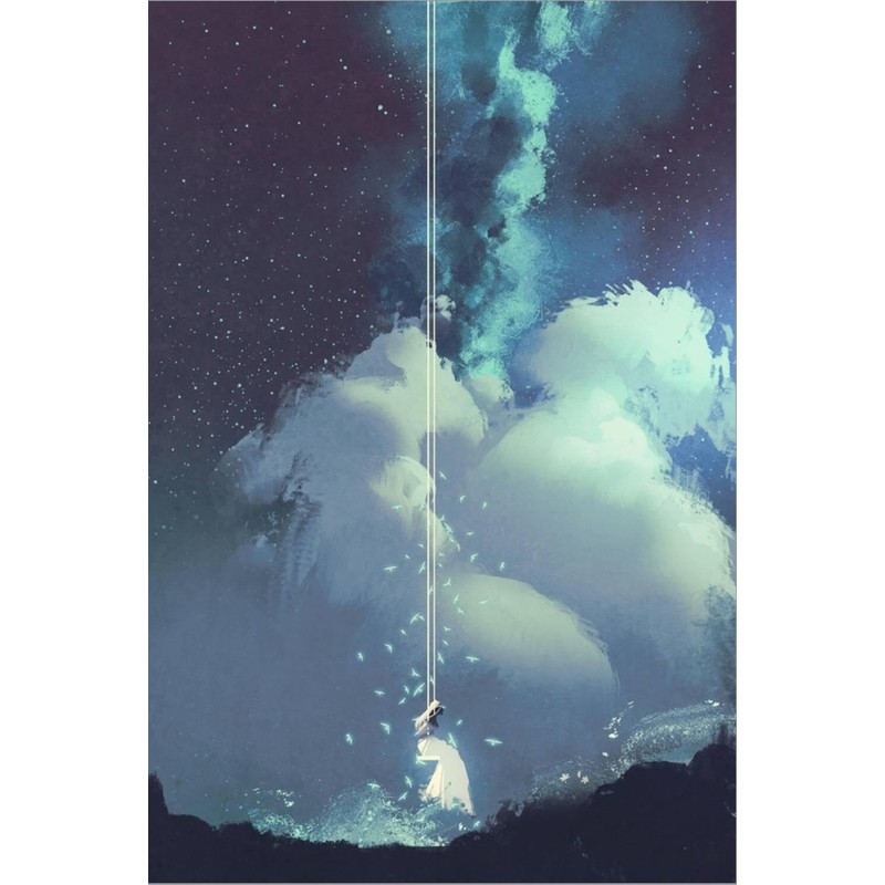 ART.COM Stretched Canvas Print The Woman on a Swing under the Night Sky with Stars and Clouds,Illustration Painting by Tithi Luadthong, 12" x 18"