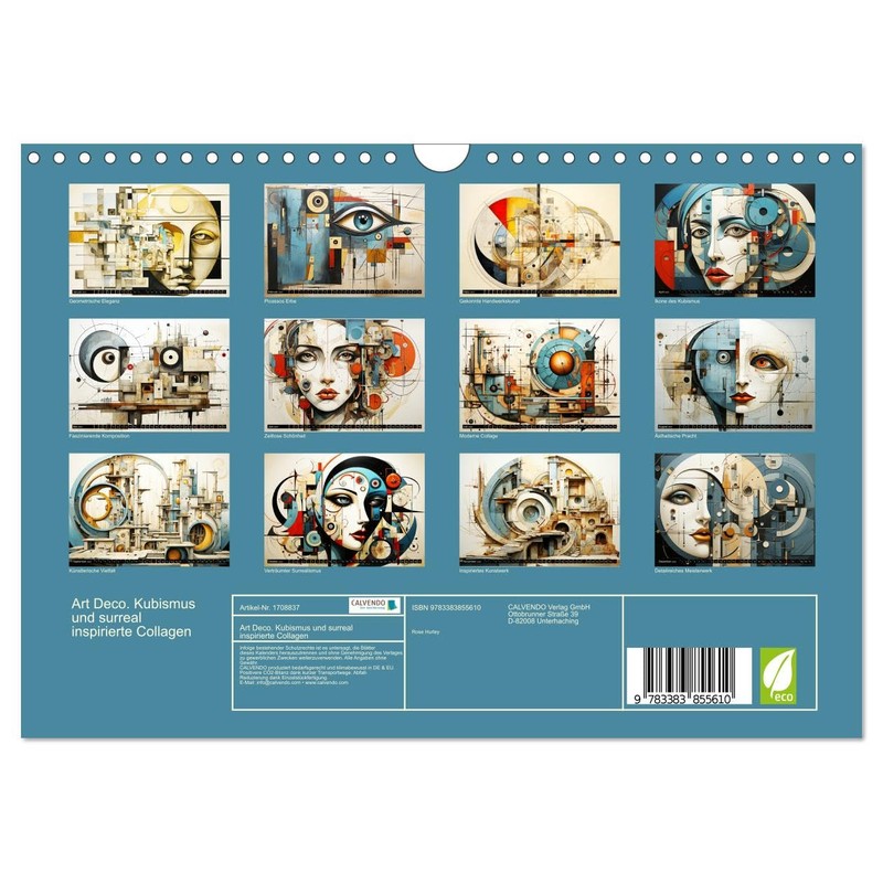 Art Deco Cubism and Surreal Inspired Collages (Wall Calendar 2025 DIN A4 Landscape), CALVENDO Monthly Calendar