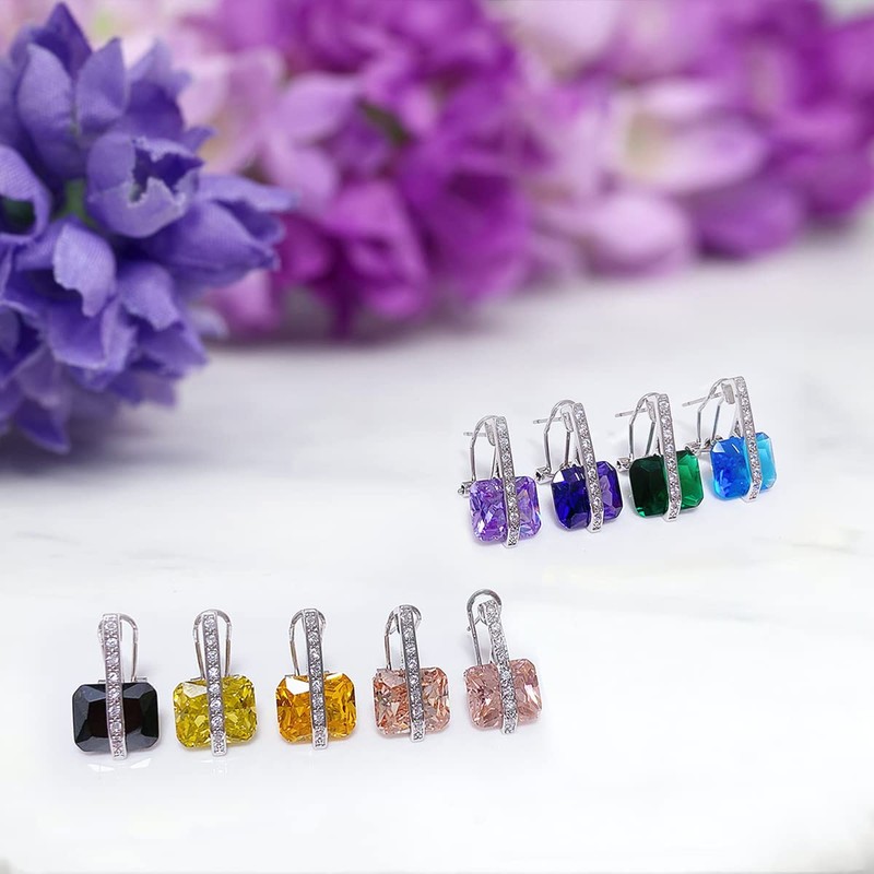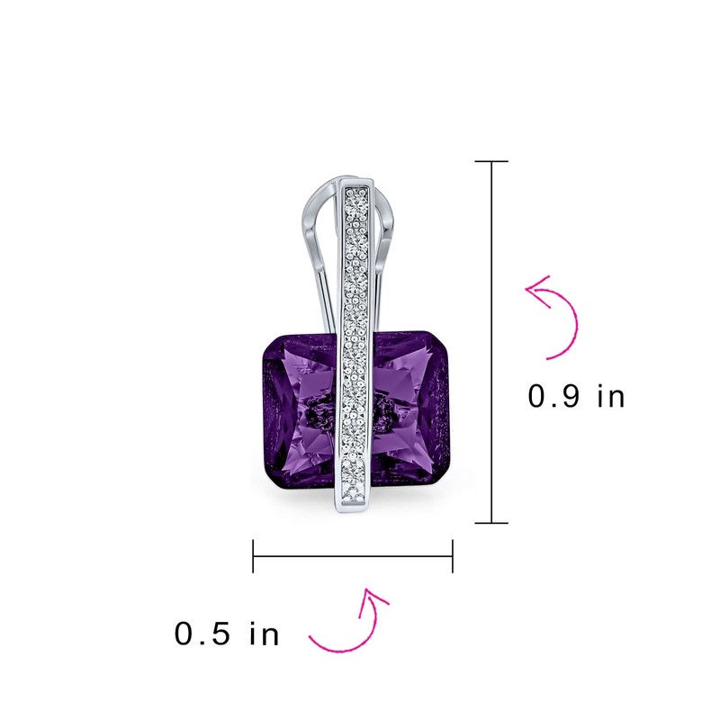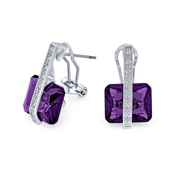 Art Deco Style Square Gemstone Cubic Zirconia AAA Rectangle Simulated Purple Amethyst Emerald Cut CZ Drop Earrings For Women Silver Plated Omega Back February Birthstone