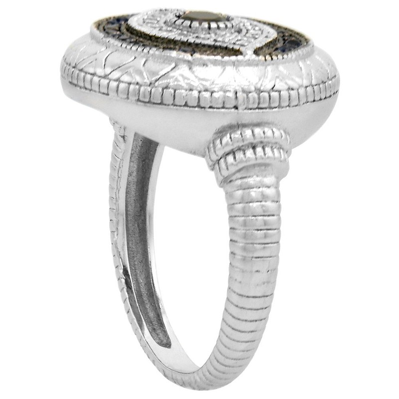 Art Deco Style Sterling Silver Evil Eye Ring w/Synthetic Blue Sapphires & CZ stones 5/8 inch, size 8