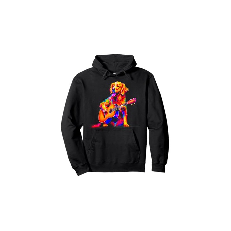 Art Design Golden Retriever Dog Guitar Pullover Hoodie