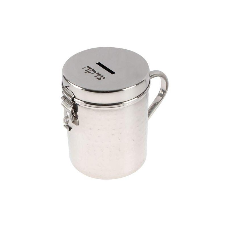 Art Judaica Elegant Stainless Steel Hammered Design Tzedakah Box 13 cm