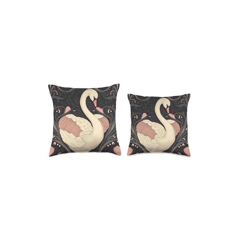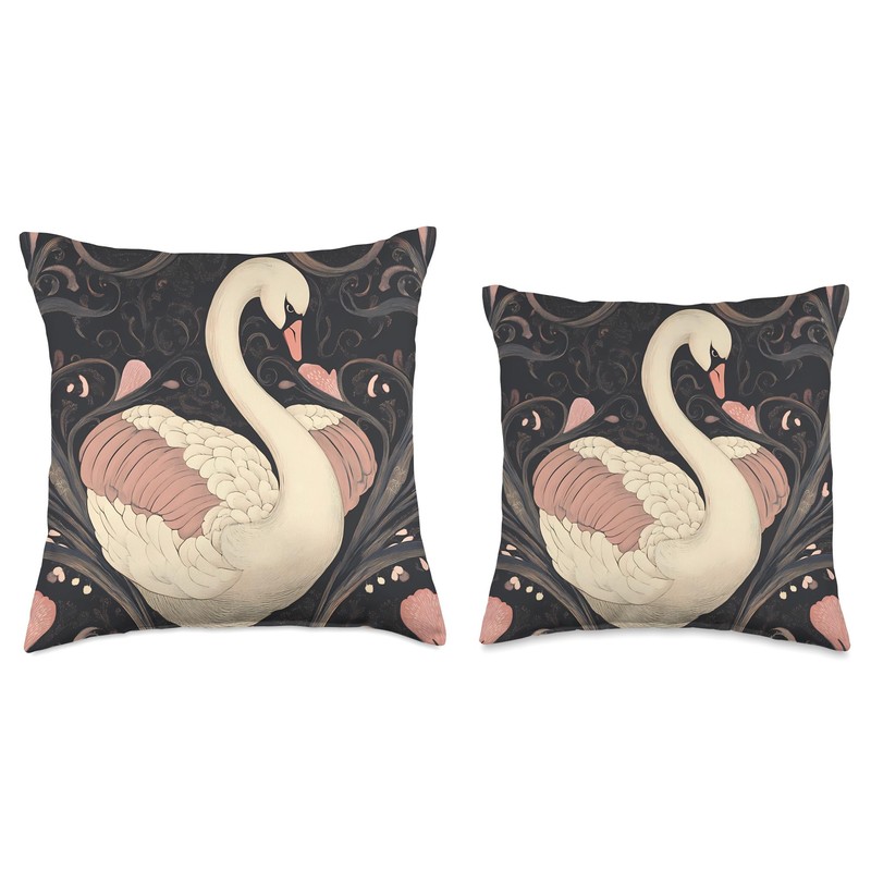 Art Nouveau Swan Wildlife Pattern - Elegant Nature-Inspired Throw Pillow