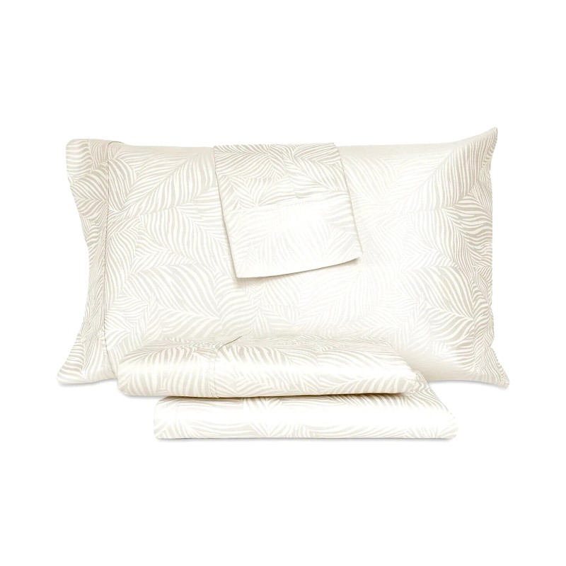 Elevate your bedroom with the Woven Jacquard Feather Design Sateen Sheet Set from Art of the Weave, featuring an elegant and sophisticated jacquard feather design with a luxurious sateen finish.