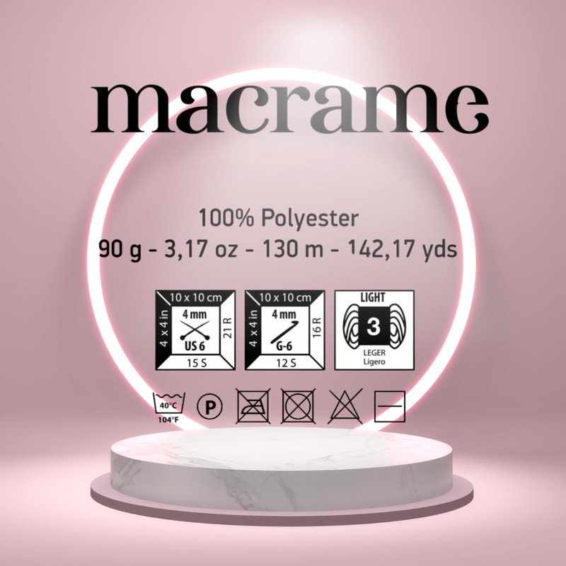 - PREMIUM POLYESTER MACRAME CORD – Made from 100% Polyester, this 2mm macrame cord is soft, durable, and versatile. Each skein weighs 90g, providing 130 meters (142 yards / 426 feet) of high-quality yarn, ideal for macrame, crochet, and crafting projects.