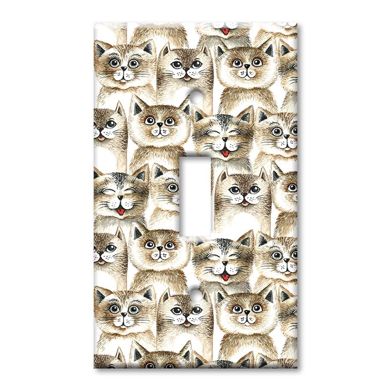 - Cat theme printed image on a 1 gang toggle solid metal Wall plate. Art Plates 1 Gang Toggle Switch / Wall Plate - Brown Cat Toss