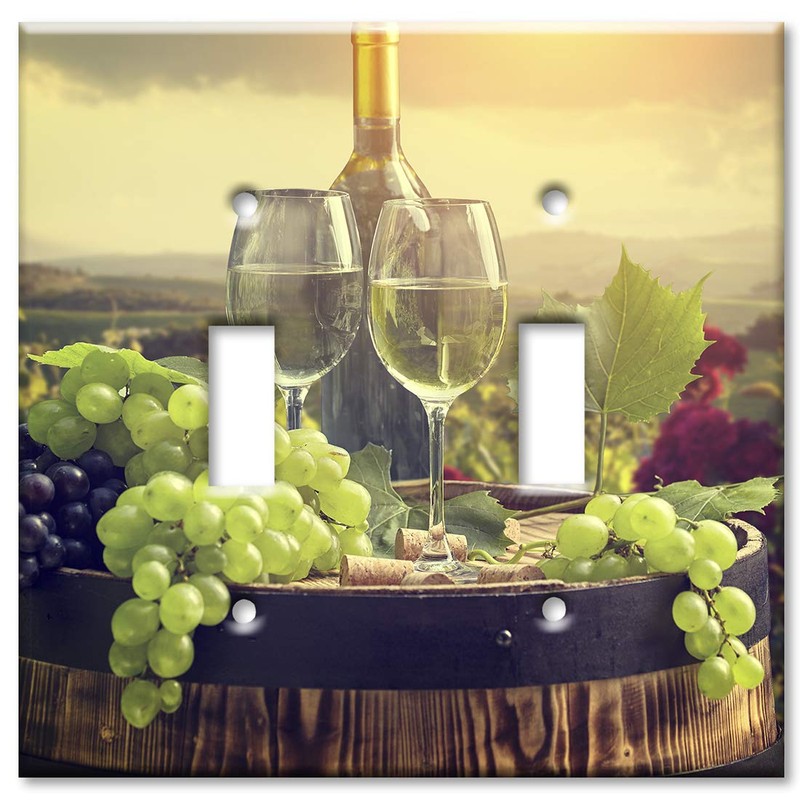 Art Plates 2-Gang Toggle OVERSIZED Switch Plate - OVER SIZE Decorative Metal Wall Plate - Green Grapes and Wine - (Made in USA)