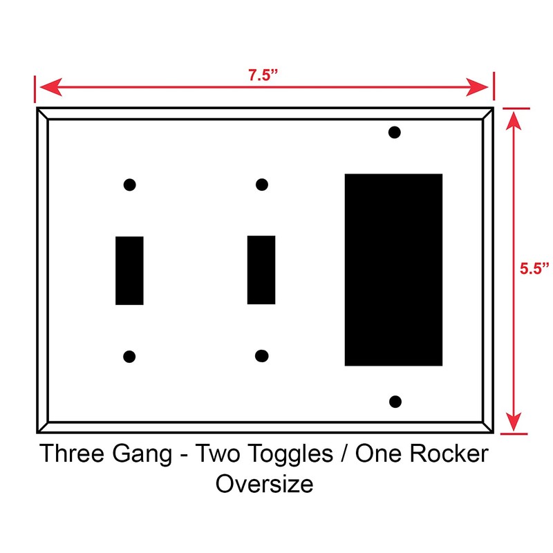 - Three Gang Combination Switch Plate - Toggle - Toggle - Decora - Size: 7.5 x 5.5 - (Over Sized)