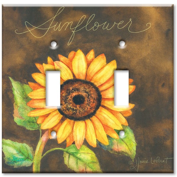 Art Plates - Double Gang Toggle OVERSIZE Switch Plate - OVER SIZE Decorative Metal Wall Plate - Sunflower - (Made in USA)