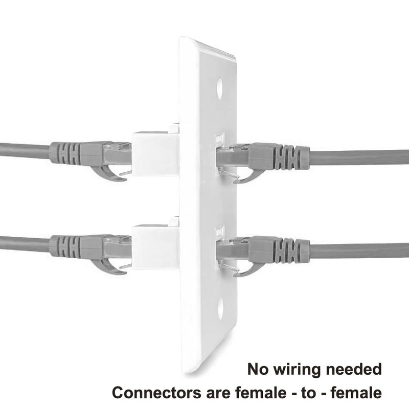 - Simple to Install: Two minute do-it-yourself job changes the look of your room. No wiring required. Two Port RJ45 Ethernet jacks have female-to-female connections. No wiring needed. Works with Cat5 Cat5e Cat6 Cat6a Cat7 Cat7a Cat8 cables. Color matched screws are included.