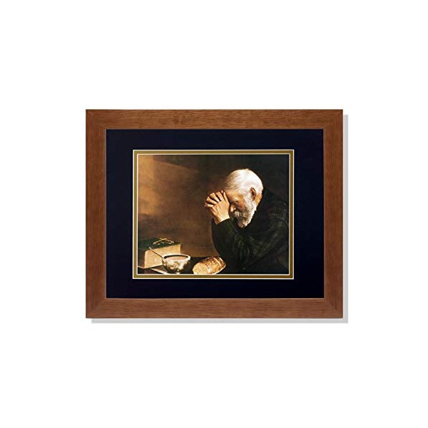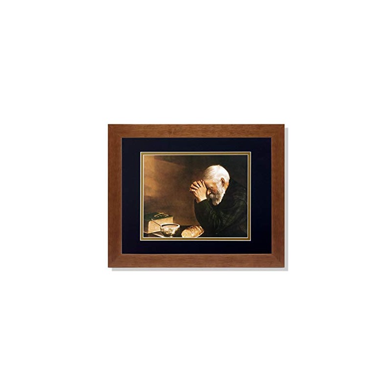Art Prints Inc Daily Bread Man Praying at Table Grace Religious B/G Matted Picture Honey Framed