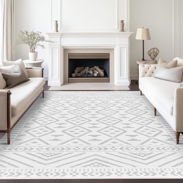 Art&Tuft Area Rugs 8x10, Super Soft Ultra-Thin Moroccan Washable Rug, Anti-Slip Backing Rugs for Living Room, Foldable Geometric Machine Washable (8'x10', 02-Grey)