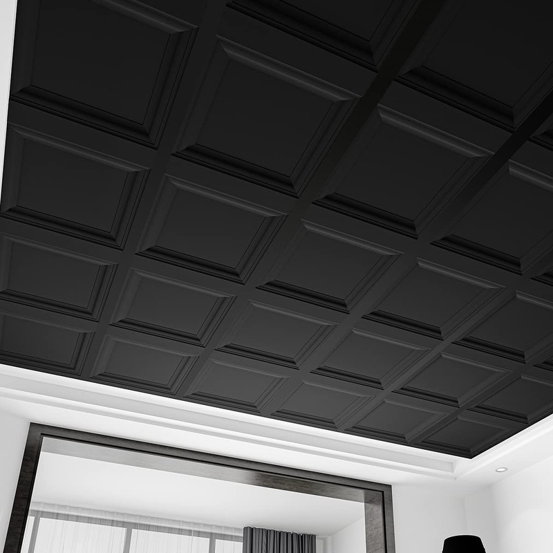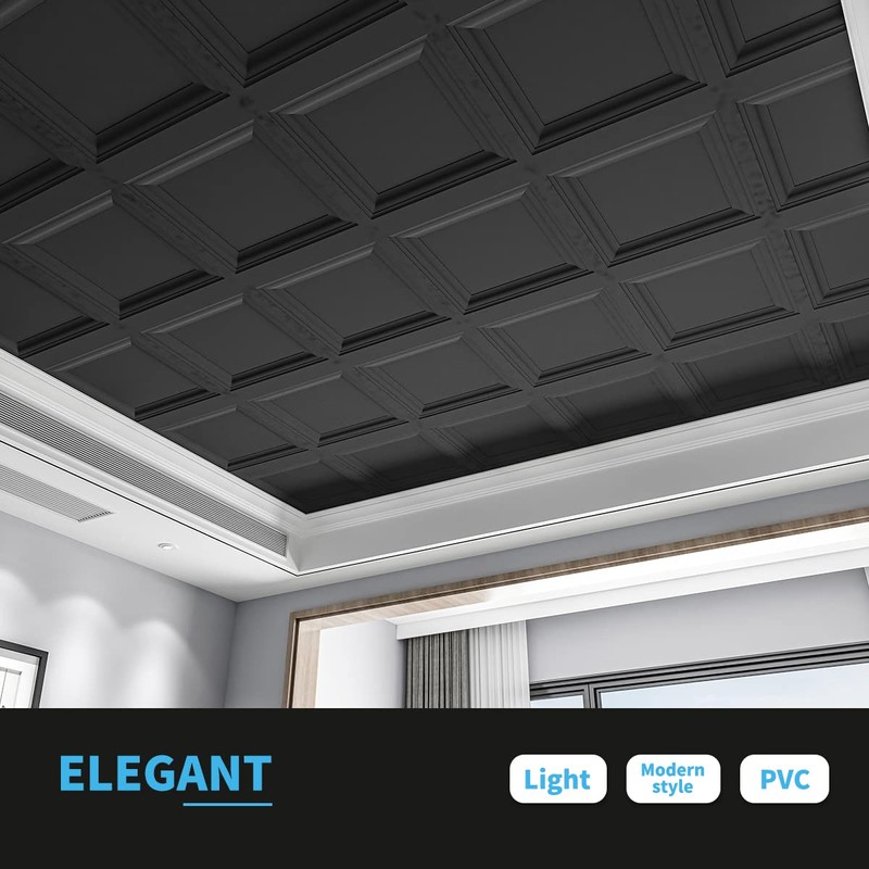 Art3d 12-Pack Square Black Drop Ceiling Tile 2ft x 2ft, PVC Ceiling Panel 24 ...