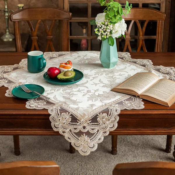ARTABLE Exquisite Lace High-End Jacquard Fabric Tablecloth Table Runner Rectangular Square Optional Suitable for All Kinds of Home Gatherings and Weddings (Beige, 85 x 85 cm)