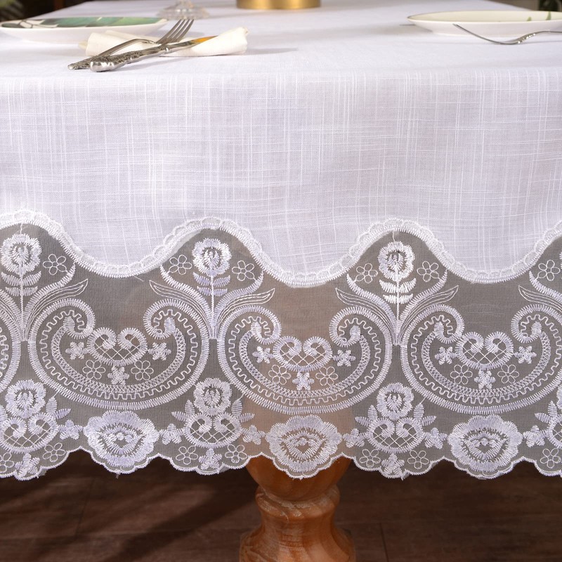 ARTABLE Lace Rectangular Tablecloths with Exquisite Macrame Border Clear Embroidered Kitchen Holidays Fabric Tablecloth (White, 52 x 70 Inch)